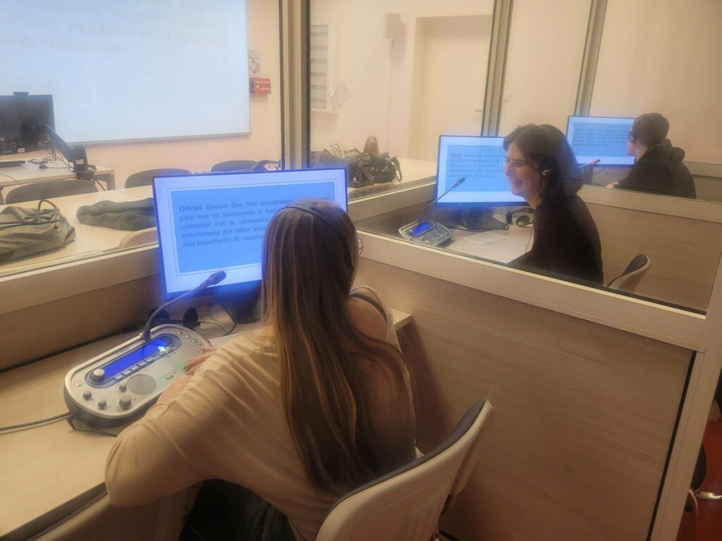 Uczniowie mieli okazję spróbować swoich sił w tłumaczeniu symultanicznym i konsekutywnym, a także porozmawiać z tłumaczem przysięgłym o specyfice jego pracy. 🇵🇱🇪🇸