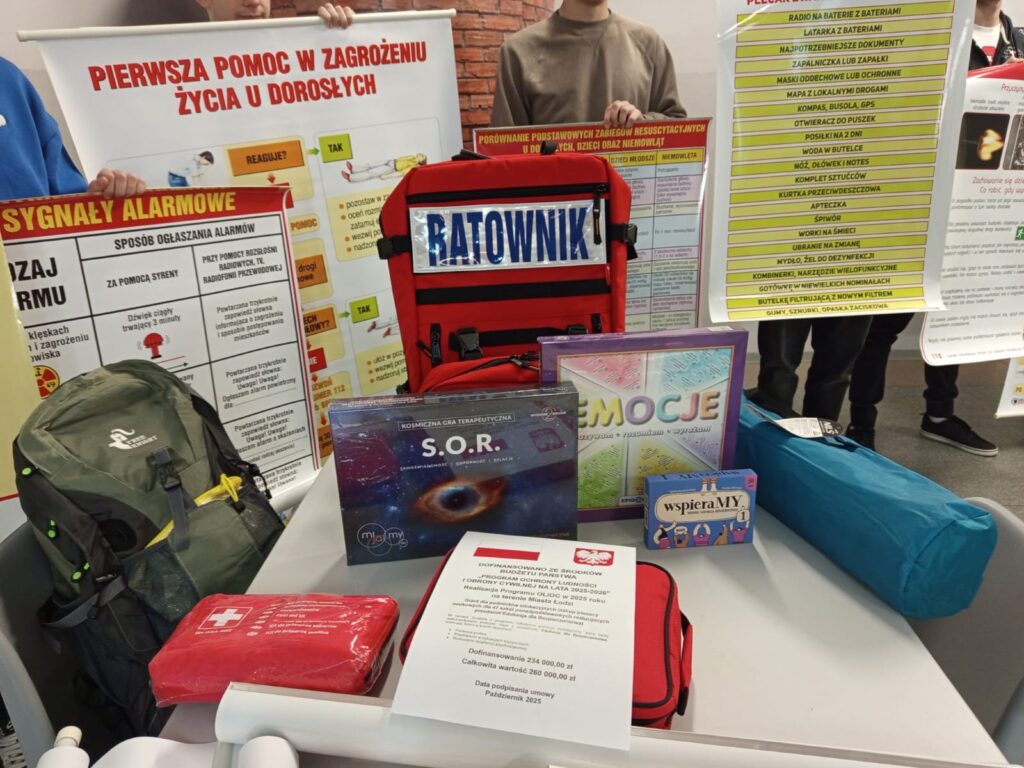 W ramach środków z programu zakupiono pomoce dydaktyczne, które będą wykorzystywane podczas zajęć z przedmiotu Edukacja dla Bezpieczeństwa, realizując treści w trzech obszarach:
