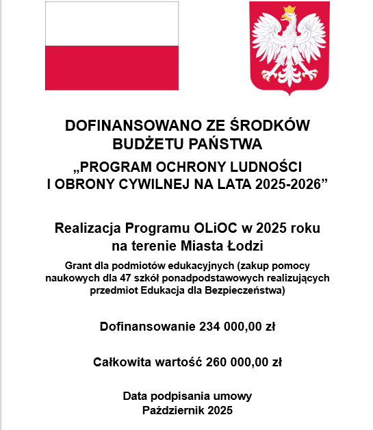 Grant dla podmiotów edukacyjnych (zakup pomocy naukowych dla 47 szkół ponadpodstawowych realizujących przedmiot Edukacja dla Bezpieczeństwa)